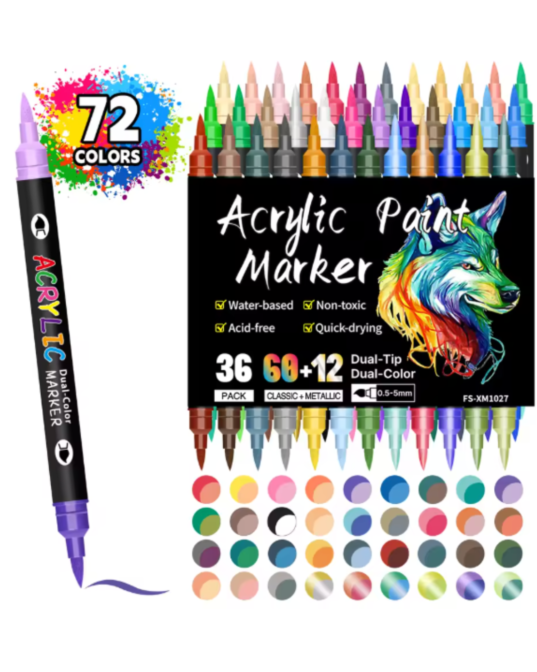 Add color to everyday moments with this vibrant dual-tip acrylic marker set. Designed for easy, mess-free creating, it’s perfect for all your art projects — whether you’re journaling, making DIY décor, crafting, or enjoying creative time at home.