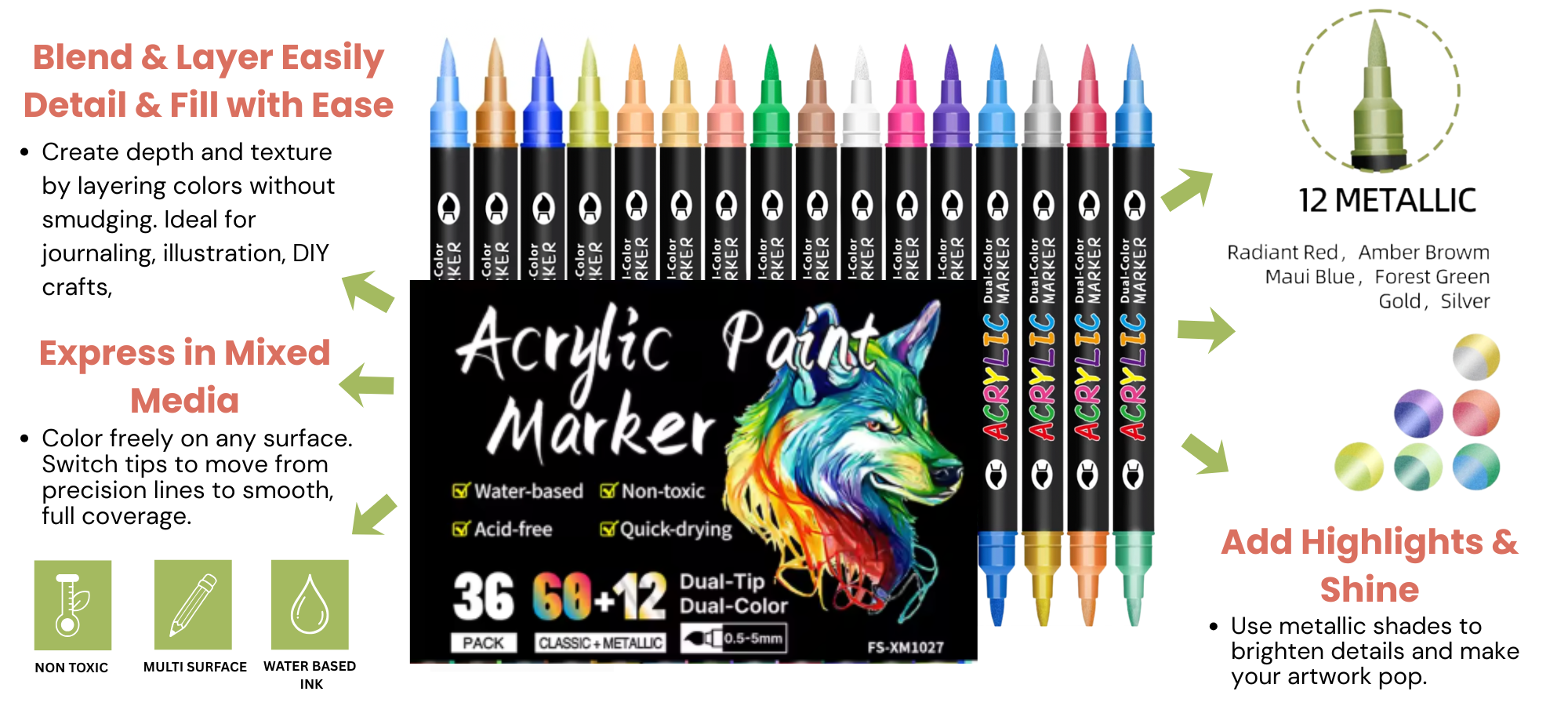 They’re water-based and quick-drying, delivering rich, long-lasting color. Once dry, the paint becomes permanent on porous surfaces, and on smooth surfaces, it can be sealed for added durability and peace of mind.