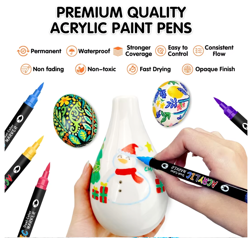 Omzieh Dual-Tip Acrylic Markers – Set of 12 with 24 Vibrant Colors | Soft Brush, Dual-Color Design for Canvas, Wood, Glass & Beyond